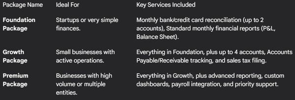 We offer simple, flat-rate monthly packages tailored to the size and transaction volume of your business. This ensures you always know what you're paying, with no hidden hourly fees.